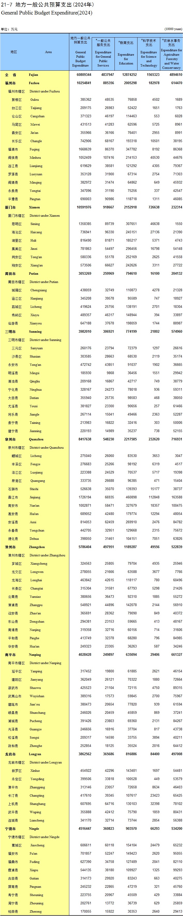 21-7 地方一般公共预算支出(2024年)