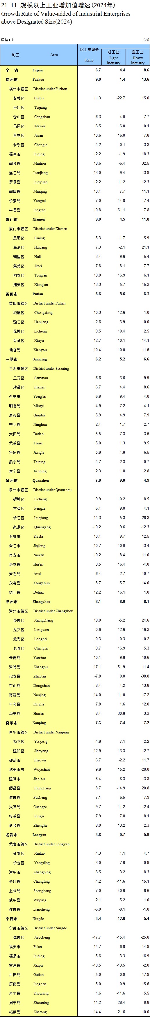 21-11 规模以上工业增加值增速(2024年)