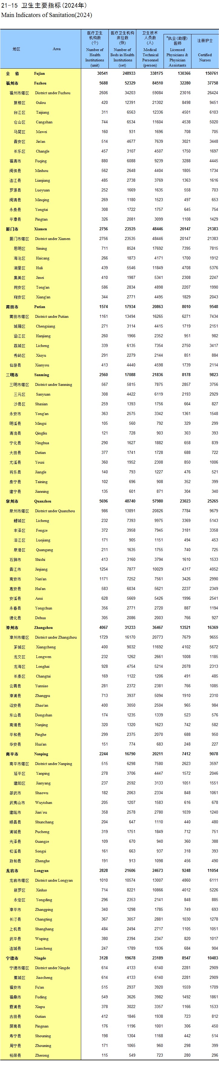 21-15 卫生主要指标(2024年)