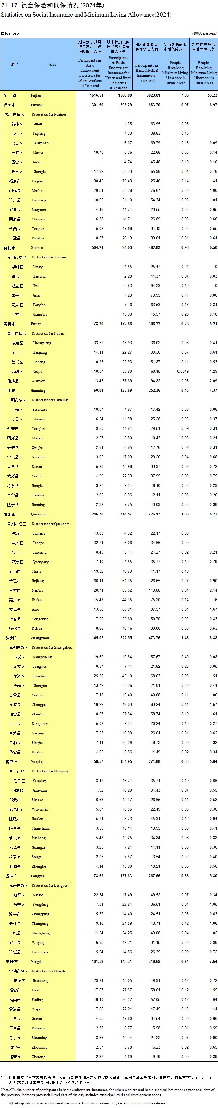 21-17 社会保险和低保情况(2024年)